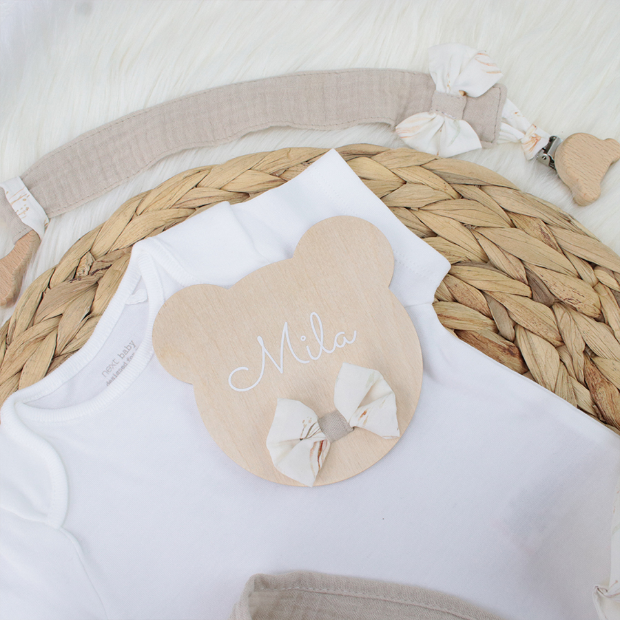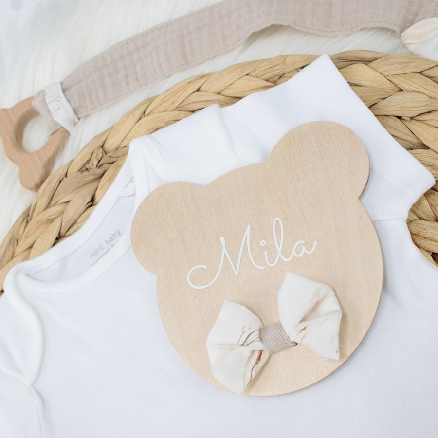 Holz-Erinnerungskarte Bär – Verkünden Sie der Welt das Glück Ihrer kleinen Ankunft