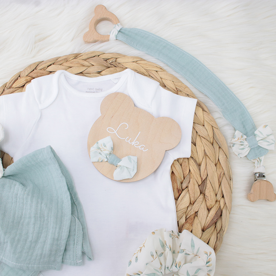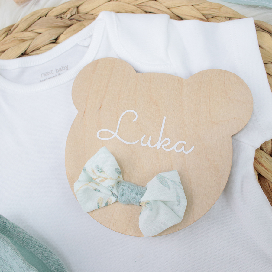Holz-Erinnerungskarte Bär – Verkünden Sie der Welt das Glück Ihrer kleinen Ankunft