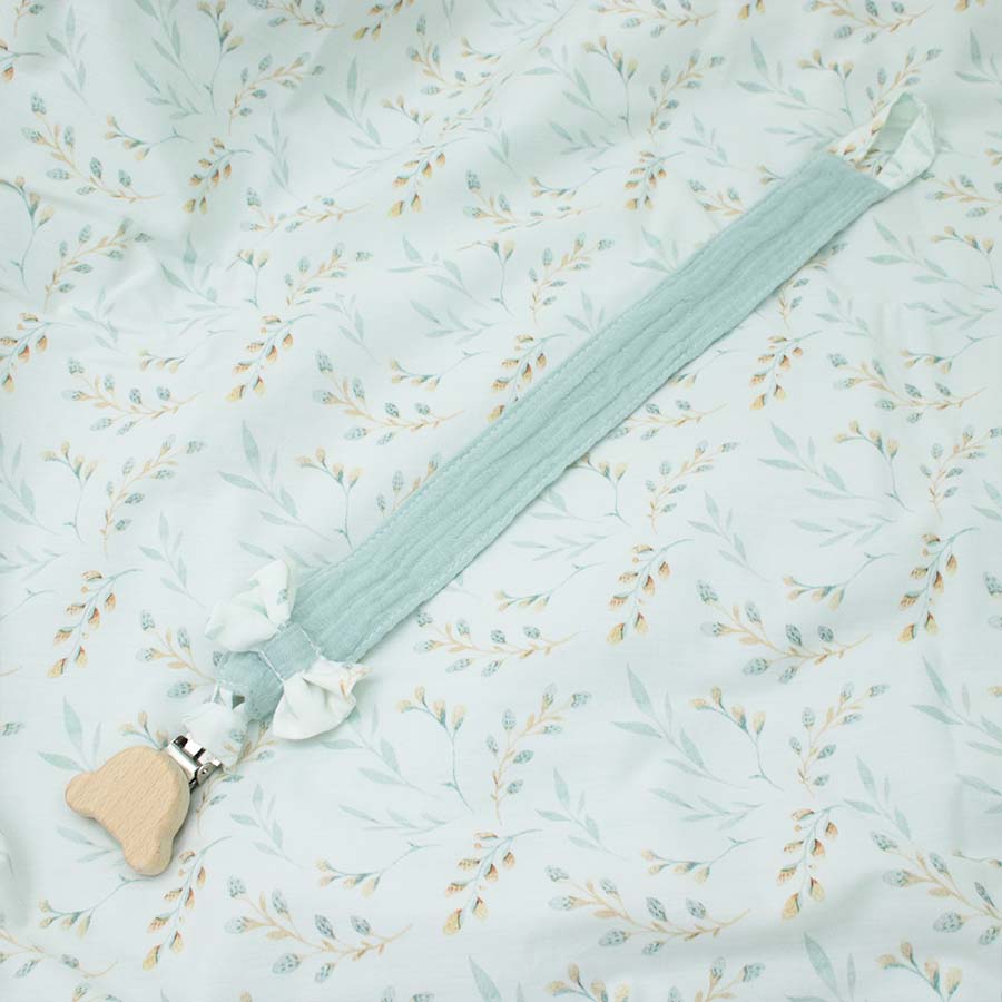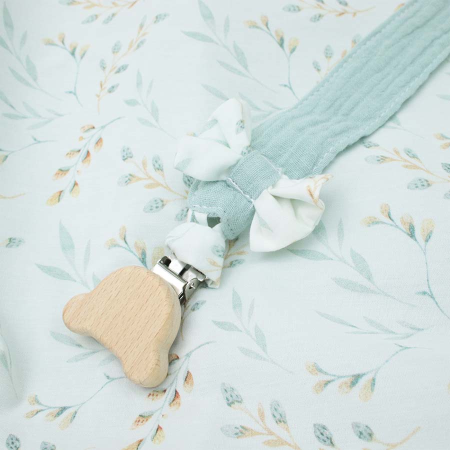 Die niedliche und moderne Schnullerkette ist garantiert ein Geschenk, das jeden Elternteil erfreut. Der Anhänger mit der süßen Schleife wird handgefertigt in Slowenien aus hochwertigen Materialien, doppellagigem Musselin und Baumwolle. An der Schnullerkette können Schnuller und Beißring befestigt werden – alles, was Ihr Kleines braucht, um sich zu beruhigen.